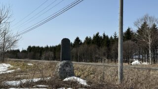 令和8年(2026)3月20日(金祝)広尾郡大樹町芽武 国道336号線を走り、芽武の交差点の手前に石碑が見えた。文字は一部しか読めない。【開拓三十周年記念】(判読できる文字のみ) 開拓三十周年記念 志為農業離郷土 発為耕地 有功 酪農 志 ...