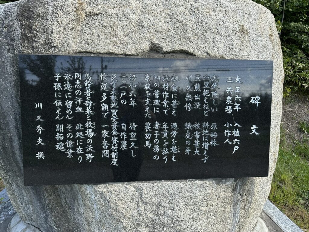 この地区は、三共農場の小作人によって開拓されたらしい。碑文は美しい詩のようになっていた。