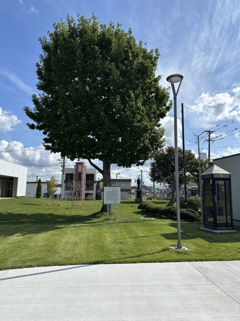 役場の小公園内に、町の歴史上の偉人の胸像と石碑があった。