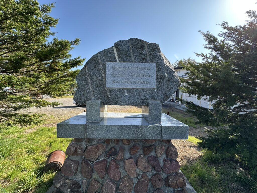 斜里市街の手前、国道334号線と道道1000号線の交差点のところに川上公民館があり、そこに開拓記念碑があった。