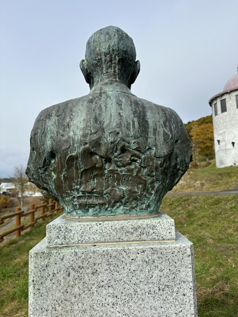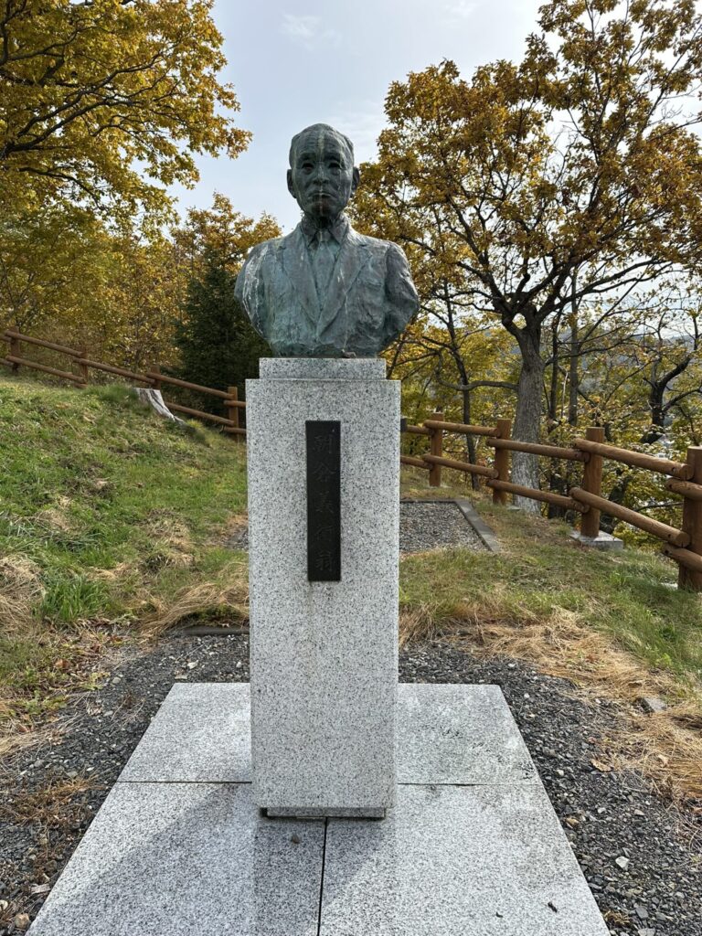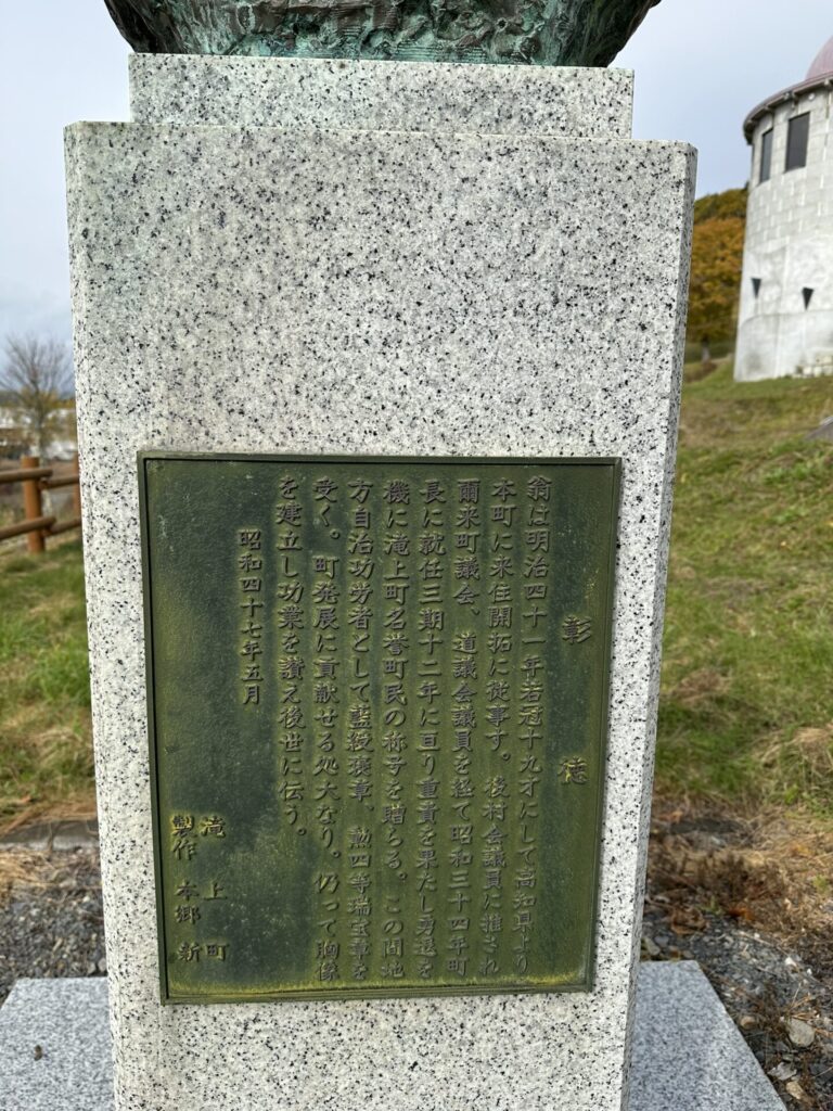 芝ざくら公園のところに胸像があった。滝上名誉町民の朝倉氏の胸像だった。なお、この胸像の作者は、本郷新だった。