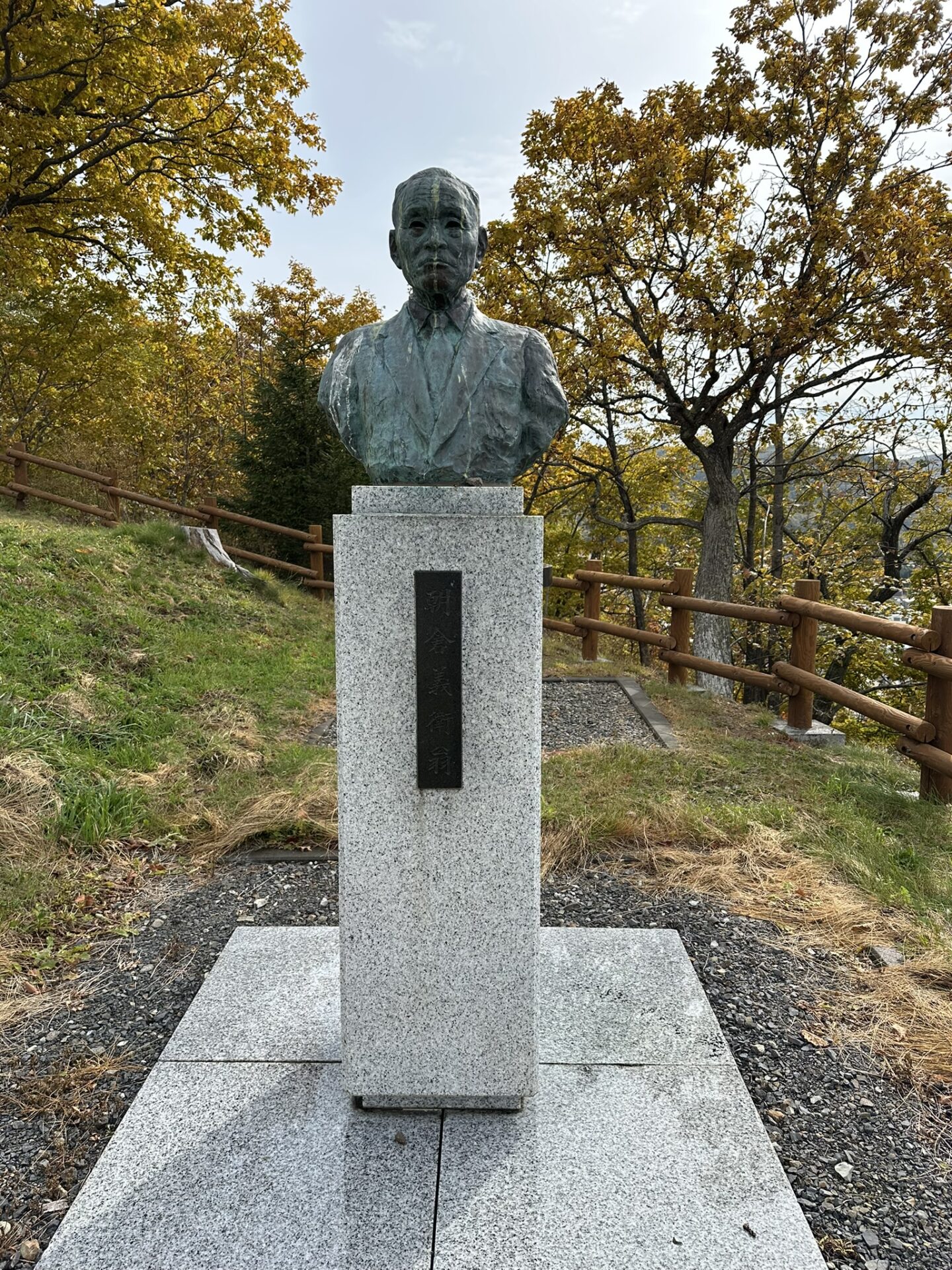 芝ざくら公園のところに胸像があった。滝上名誉町民の朝倉氏の胸像だった。なお、この胸像の作者は、本郷新だった。