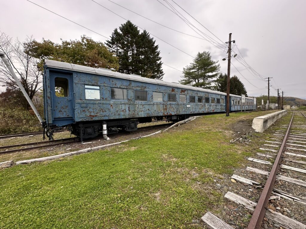 函館市に向かう途中、日勝峠を通って平取町経由で向かう。平取町の振内市街を一度走ってみたかったので、役場支所前に車を停めて今日の目的地である振内鉄道記念館に向かう。