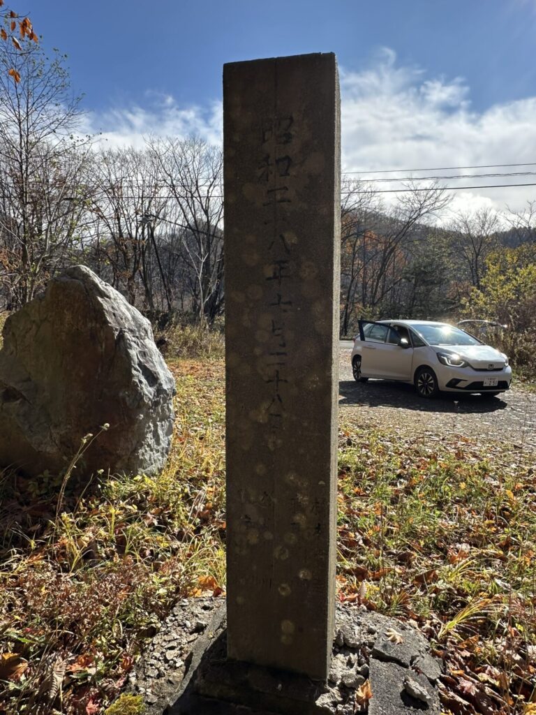国道237号線を北上し、日高町市街地の手前に石碑が見えた。