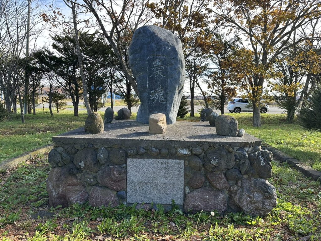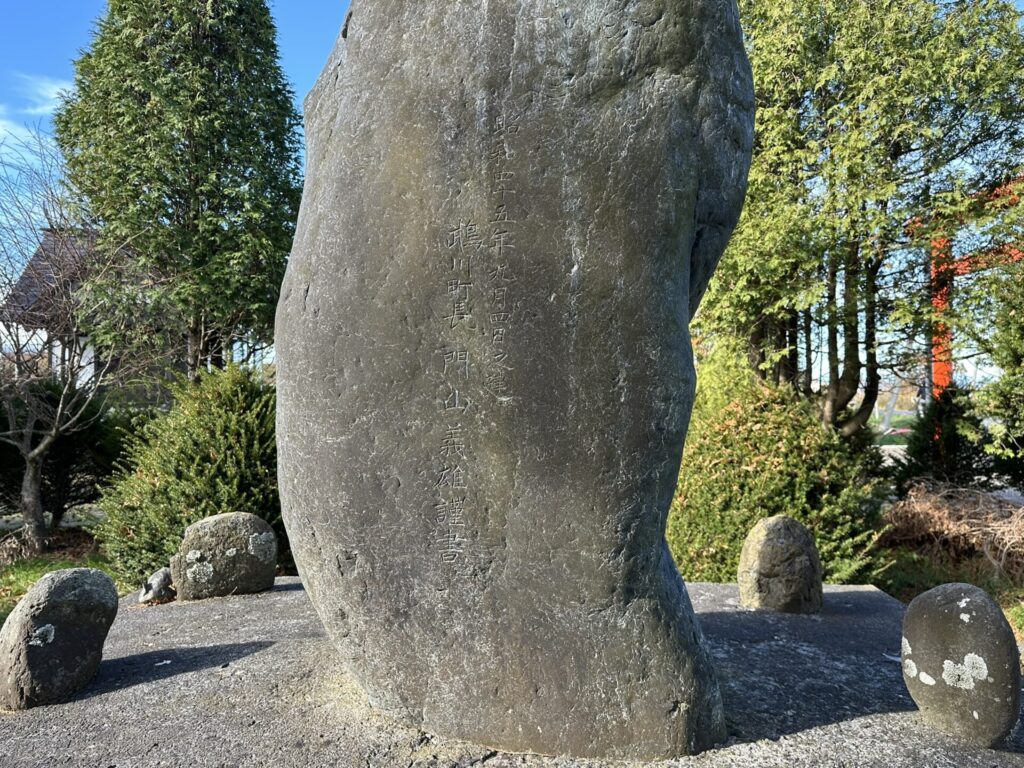 むかわ町市街から平取町に抜けるため道道74号線に入り、高速道路をすぎたあたりの川東第1集落センター及び稲荷神社があるところに、石碑があった。