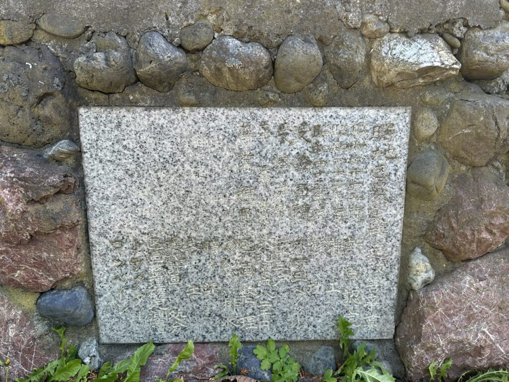 石碑の正面に上記のとおり刻まれ、裏面には次のとおり刻まれていた。「碑文