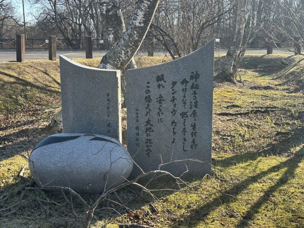 本日は釧路市の山花の開拓記念碑を走って訪問することにする。車を鶴公園から走ることにするが、公園内にも石碑があった。