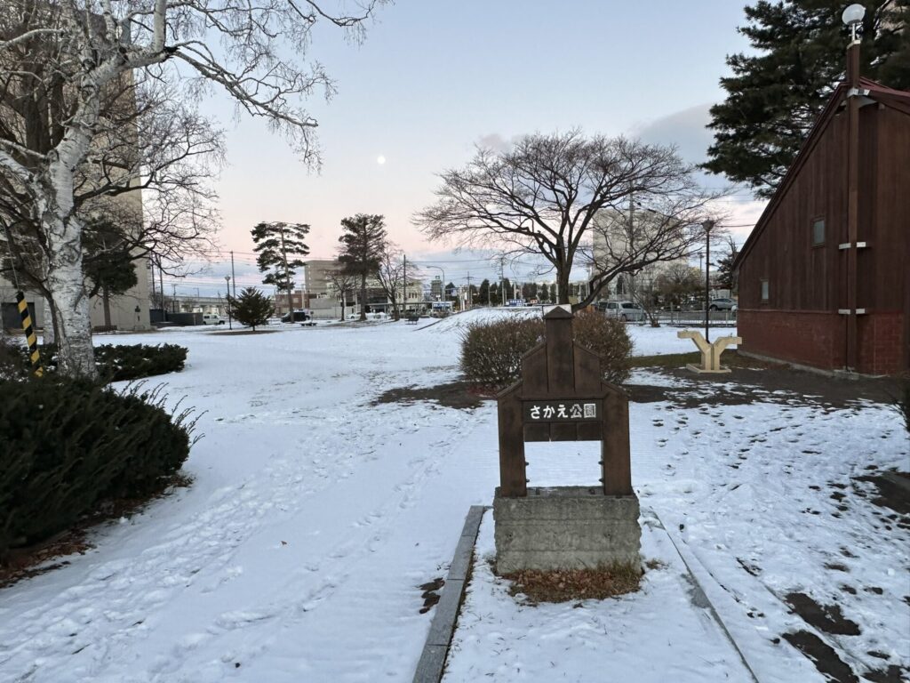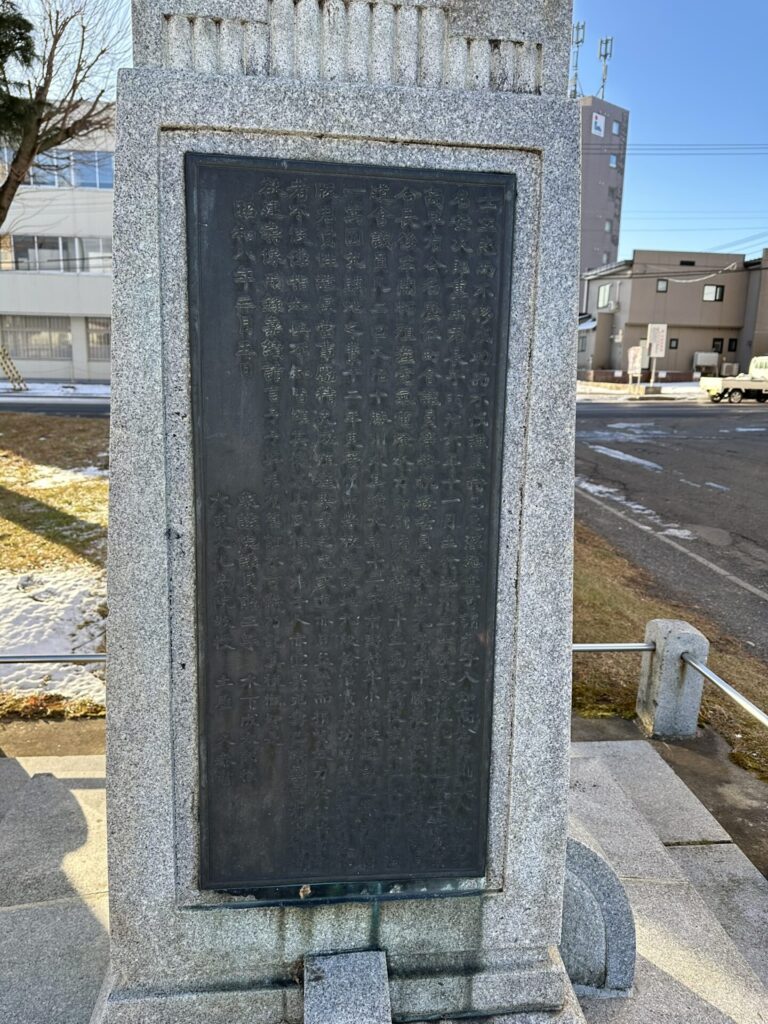 帯広に泊まった朝、コンビニに行く途中のさかえ公園で説明版を見つけた。