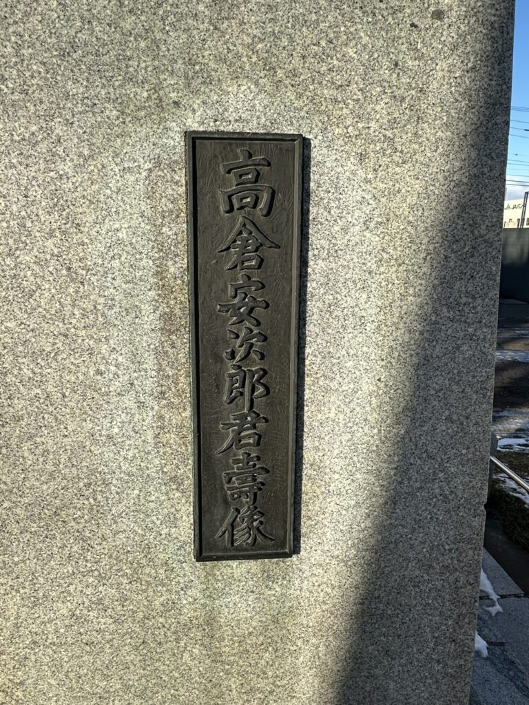 士は志を立てて揺らぐことなく、功績があっても誇らず、謙虚に自らを律し、恵みを世の中に施す者を君子という。高倉君のような人物こそ、まさにその君子であろう。君の名は安次郎。重助君の長子で、明治六年十一月、江州土山に生まれた。父・友長とともに北海道帯広に移り住み、商業に従事して早くから名声を得た。町会議員、学務委員、税務委員などを歴任し、大正元年には十勝農産および東部雑穀商組合の組合長となった。その後、開拓・殖産・電気・電灯・水力・印刷など十五の会社を統括し、取締役あるいは社長に選任された。また北海道会議員にも二度選ばれた。さらに十勝川の治水事業に尽力し、その功績は大きかった。大正十一年には野付牛小学校建設のため一万円を寄付し、土地購入費に充てられた。十二年には中学校建設のためにも土地代を寄付した。これらの功績により、政府はその功を賞し、紺綬褒章などを授与した。君は生来、勤勉で厚い人柄であり、当時、殖産興業の志をもって励み、その成果を成し遂げた。家業も日ごとに栄え、公共事業への貢献は数えきれないほどであった。人々はその徳を称え、その風雅を慕った。まさに君子と呼ぶにふさわしい人物である。君が長寿を迎え、華甲(六十一歳)に達したことを祝い、寿像を建てようという志ある者が現れ、功績を記す文章を求めてきた。私は君と旧来の縁があり、辞退できず、このようにその概要を記したのである。衆議院議員 勲二等 木下成太郎 撰 大東文化学院教授 土屋久泰 書