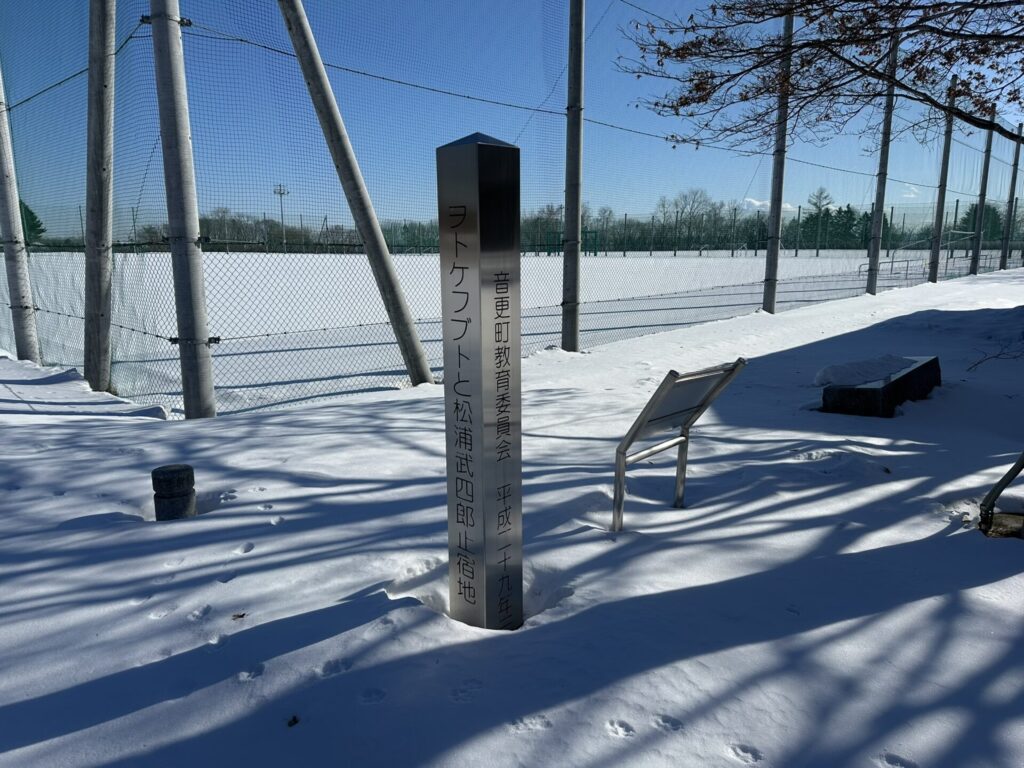 ここは以前訪問しようとして見つけることができなかったが、今回はグーグルマップを頼りに彷徨うと、音更町サッカー場の横にその碑はあった。