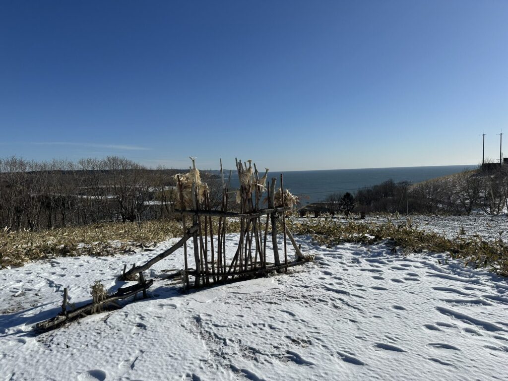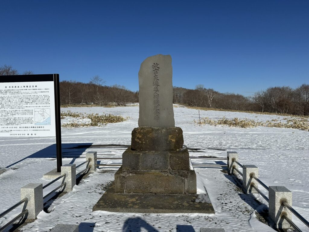 今日は吉方の南東方向にドライブし、低山&史跡巡りを実施する。本日の最初の訪問地は吉良ヶ丘。昆布森集落から少し西側の高台に記念碑と説明版が立っていた。記念碑のところが山頂なのだろうか。石碑と説明版を取材できた。頂上からは快晴の下、素晴らしい景色が広がっていた。石碑の近くにイチャルパの跡があったが、殉職した吉良氏はアイヌ民族だったからである。