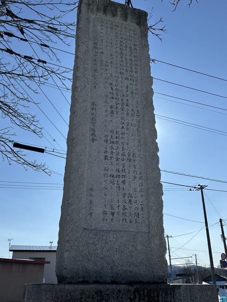 令和6年(2024)1月8日(月祝) 本別町西美里別 道道勇足本別停車場線を走っているとき、学校跡地らしいところに石碑を見つけた。前田氏が学校用に用地を寄贈し、ここに学校が建てられた。狭いながらグラウンド、学校の門らしきものも残っていた。お...