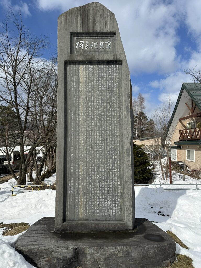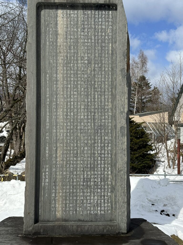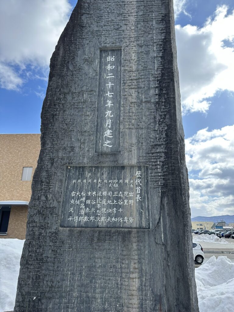 最後に市役所を訪問する。以前はあった古い市民会館が無くなっていた。以前訪問した時にあった巨大な石碑をレポートすることとする。市役所のホームページによると、1952年(昭和27)、下富良野村の開村50周年を記念して当時若松町4番にあった富良野町役場前に建立。碑には50年のあゆみが記されている。1968年(昭和43)、富良野市役所新庁舎建設とともに、現在地へ移設されたものだそうだ。