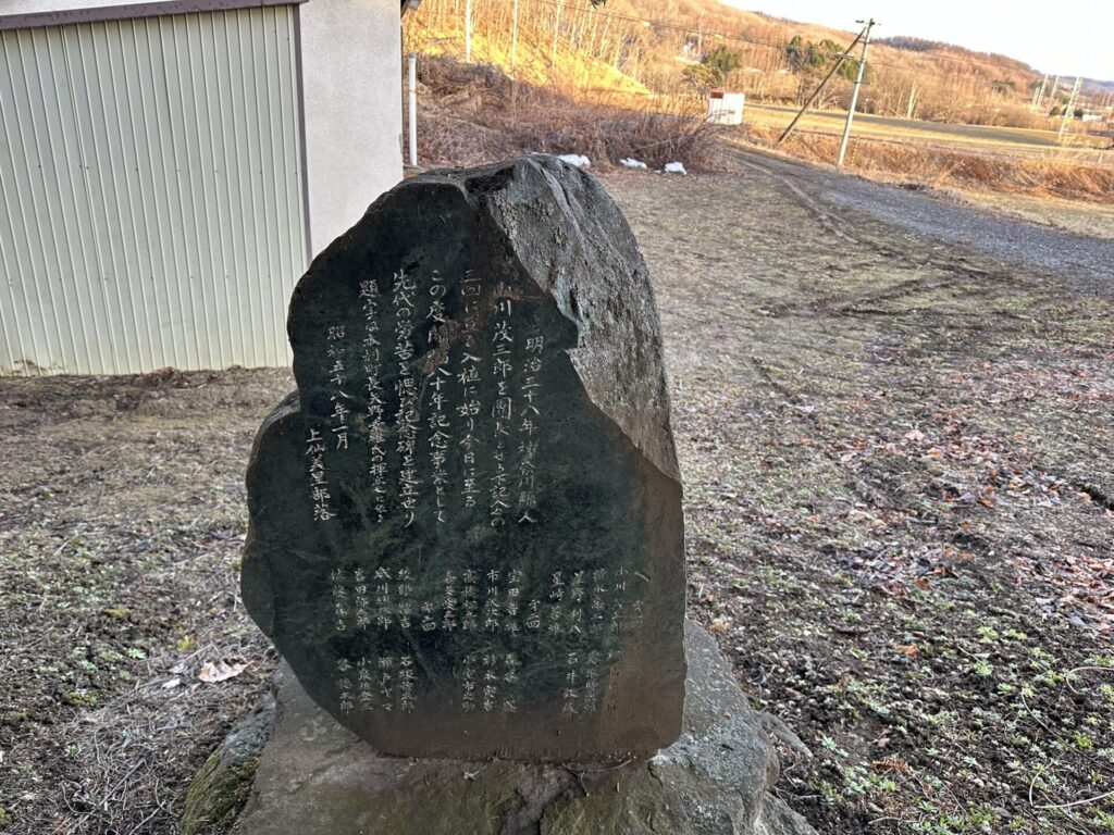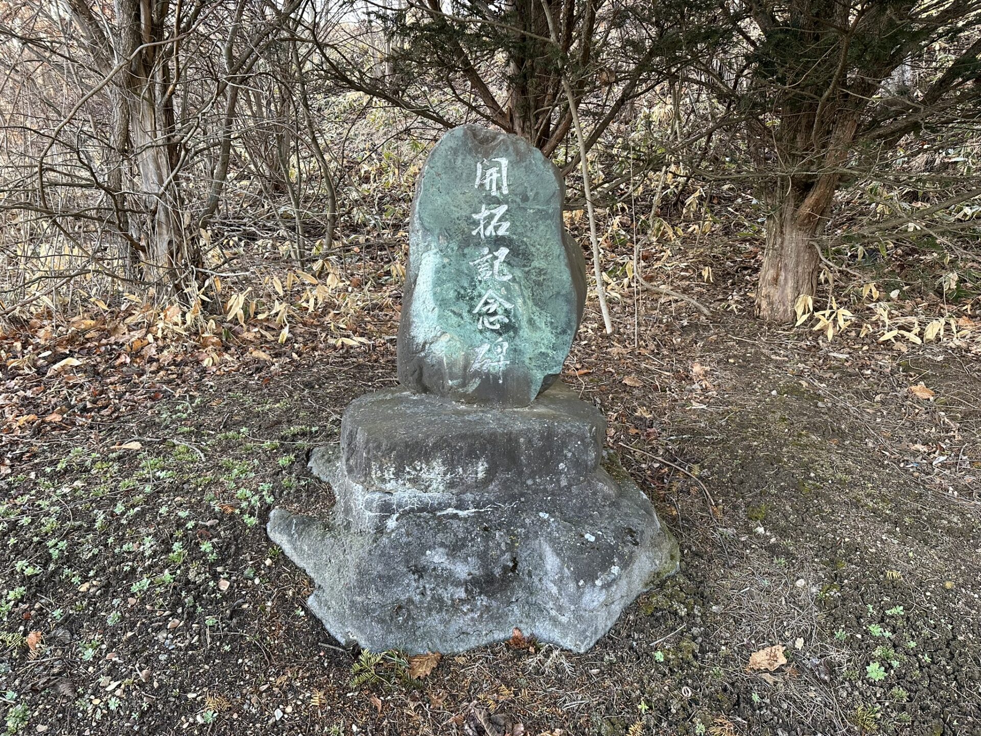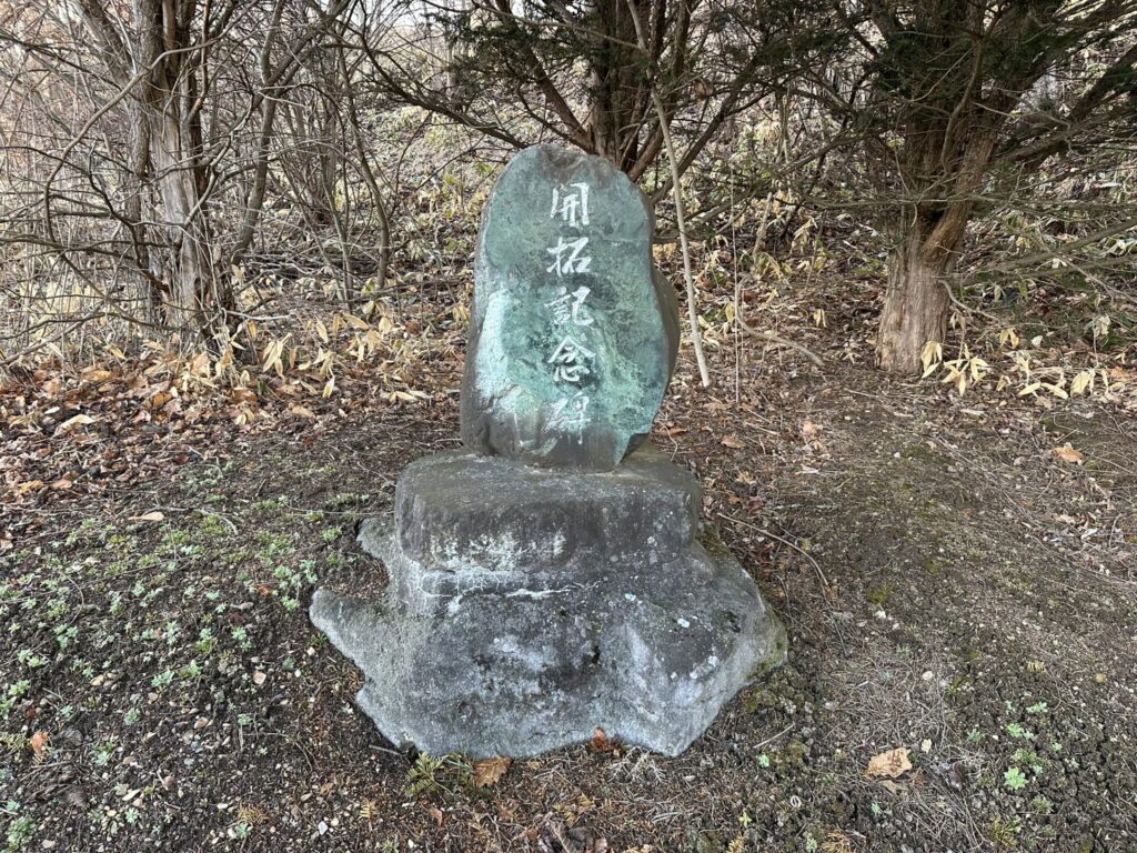 自然石に「開拓記念碑」と刻まれ、裏面には次のような説明版がはめ込まれていた。「明治三十八年神奈川県人小川茂三郎を団長とせる下記人々の三回に亘る入植に始り今日に至る この度開拓八十年記念事業として先代の労苦を偲び記念碑を建立せり 題字は本別町長矢野幸雄氏の揮毫に依る 昭和五十八年一月 上仙美里部落 (氏名略)」