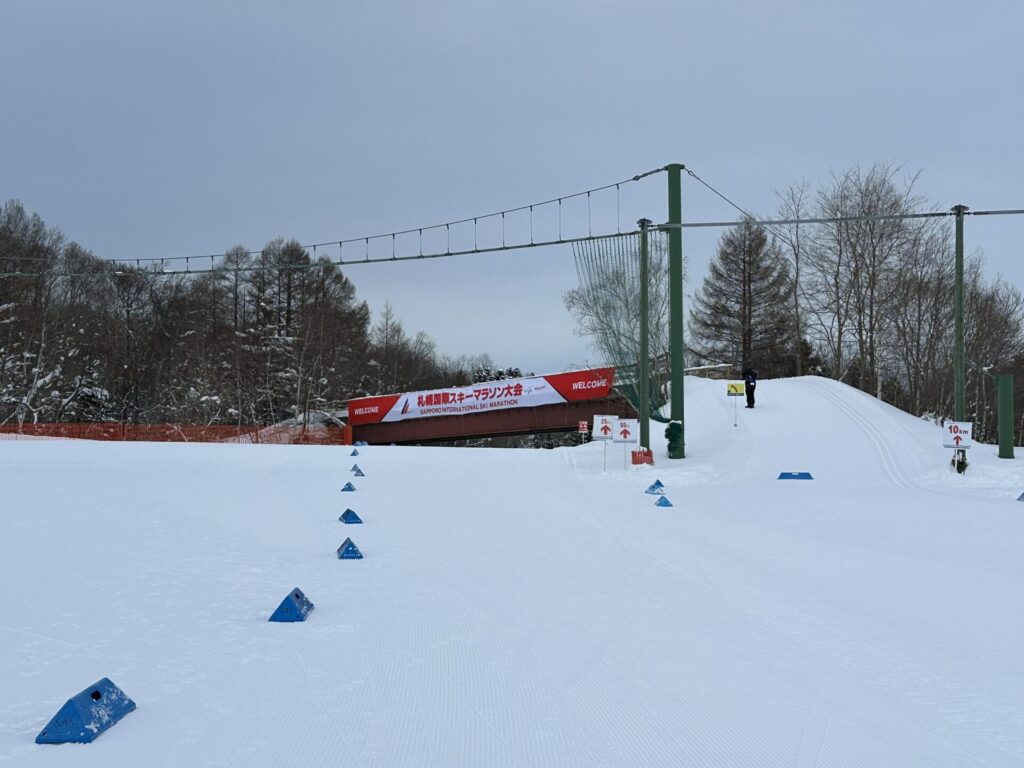 雪不足でコースが10㎞コースを4周に変更。最近の札幌国際は25㎞×2周、以前出た旭川バーサーは15㎞×3周であり、周回コースはいつもストレスで、さらに4周は初めてであり、モチベーションがさがりまくる。しかも10㎞コースの終盤に中央峠に向かう長い登坂があり心配だ。